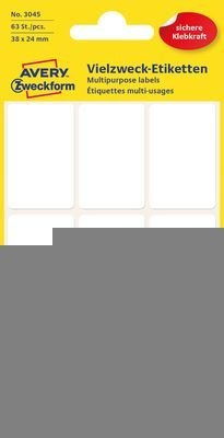 Białe minietykiety do opisywania ręcznego, 63 etyk./op., 38 x 24 mm, białe, AVERY ZWECKFORM, 3045 Avery Zweckform