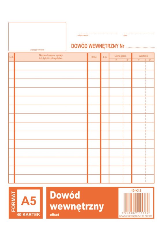 Dowód wewnetrzny A5, 40 kartek offset, 10-K12 DOTTS Dotts