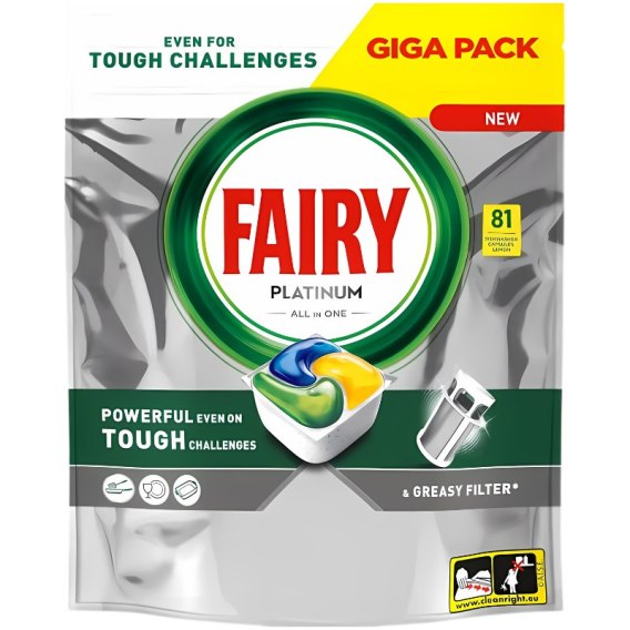 FAIRY Kapsułki do zmywarki PLATINUM ALL IN ONE 81 sztuk LEMON 36935 Fairy
