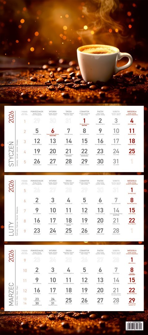 Kalendarz trójdzielny ekonomiczny KS045B KAWA 2026 WOKÓŁ NAS Wokół Nas