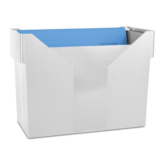 Wykonane z odpornego na pęknięcia tworzywa sztucznego_mieści 20 teczek zawieszkowych lub 3 segregatory A4/50_cechuje się wysokimi walorami użytkowymi_charakteryzuje się stabilnym i funkcjonalnym mocowaniem teczek_kompatybilne ze standardowymi szufladami archiwizacyjnymi_górne krawędzie wyprofilowane w kształt rączek ułatwiających przenoszenie_waga: 950g_wymiary: 330x260x160mm_kolor szary_5 teczek w zestawie