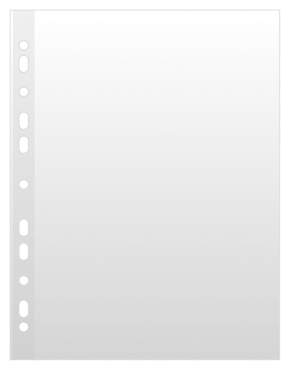 Wykonane z miękkiej, gładkiej folii polipropylenowej o grubości 50_m, wzmocniony brzeg_posiada właściwości antyrefleksyjne_krystaliczne, transparentne_otwarte na górze_antyelektrostatyczne_odpowiednie do dokumentów w formacie A4_ilość dziurek do wpięcia: 11_rozmiar: 230x305mm_100 sztuk w j.s._kolor transparentny