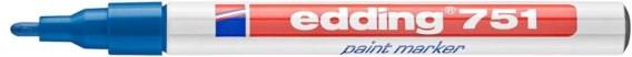 Marker lakierowy Edding 751_- marker lakierowy przeznaczony do wykonywania trwałych oznaczeń na niemal każdej powierzchni, także porowatej_- tusz pigmentowy, dobrze kryjący i wysoce nieprzezroczysty, wodoodporny i szybkoschnący, odporny na ścieranie, odporny na działanie temperatury do 400_C (kolory: biały, żółty i srebrny do 1000_C)_- tusz o nieagresywnym zapachu i kryciu zbliżonym do lakieru, nie zawiera toluenu i ksylenu_- marker posiada system kontroli dopływu tuszu do końcówki_- aluminiowa obudowa_- okrągła końcówka_- grubość linii pisania: 1-2 mm (751)_- jednostka sprzedaży 1 sztuka