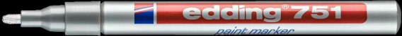 Marker lakierowy Edding 751_- marker lakierowy przeznaczony do wykonywania trwałych oznaczeń na niemal każdej powierzchni, także porowatej_- tusz pigmentowy, dobrze kryjący i wysoce nieprzezroczysty, wodoodporny i szybkoschnący, odporny na ścieranie, odporny na działanie temperatury do 400_C (kolory: biały, żółty i srebrny do 1000_C)_- tusz o nieagresywnym zapachu i kryciu zbliżonym do lakieru, nie zawiera toluenu i ksylenu_- marker posiada system kontroli dopływu tuszu do końcówki_- aluminiowa obudowa_- okrągła końcówka_- grubość linii pisania: 1-2 mm (751)_- jednostka sprzedaży 1 sztuka