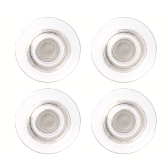 Stylowe, przezroczyste magnesy, które wyglądają profesjonalnie na każdej tablicy_mocno namagnesowane, przeznaczone do szklanych powierzchni tablic suchościeralnych_utrzymają do 6 kartek na szklanej powierzchni tablicy_średnica: 32 mm_kolor: transparentny_4 szt. w j.s.