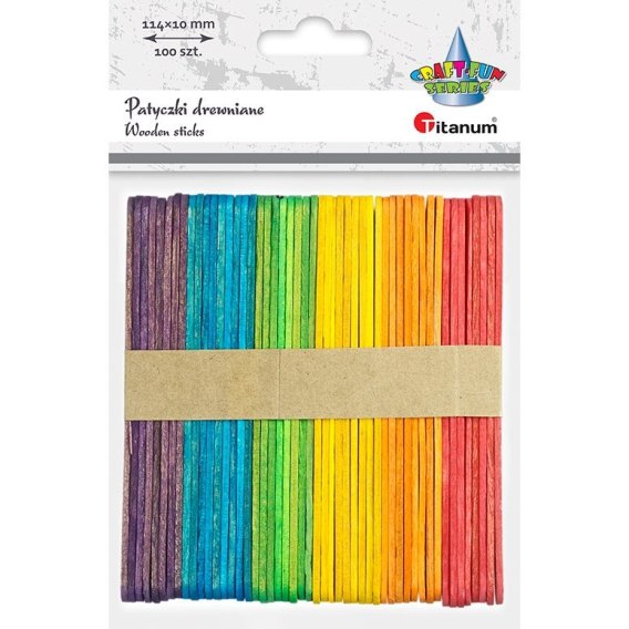 Patyczki drewniane mix kolorów (100) 11,4cm 361574 TITANUM 50 kolorowych + 50 naturalnych Titanum
