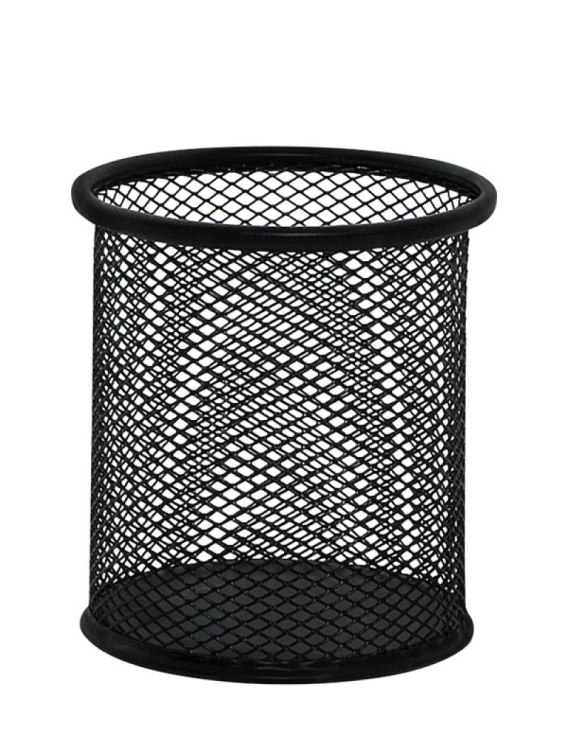 Pojemnik na długopisy, wyprodukowany z metalowej siateczki_okrągły_wymiary: 90x100mm_kolor czarny