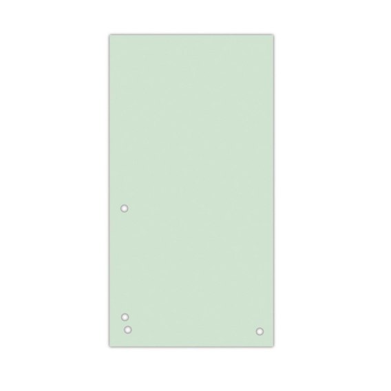 Wykonane z kartonu o gramaturze 190gsm_posiada Zielony Punkt (Der Gr_ne Punkt) - udział w systemie recyklingu i odzysku odpadów wynikający z przepisów prawa polskiego i UE_posiada certyfikat Blauer Engel_do wpinania w pionie oraz w poziomie_dziurkowanie: 4 (dziurki w odstępie 80mm)_rozmiar przekładki: 235x105mm_100 sztuk w j.s._każdy komplet osobno pakowany w folię_kolor zielony