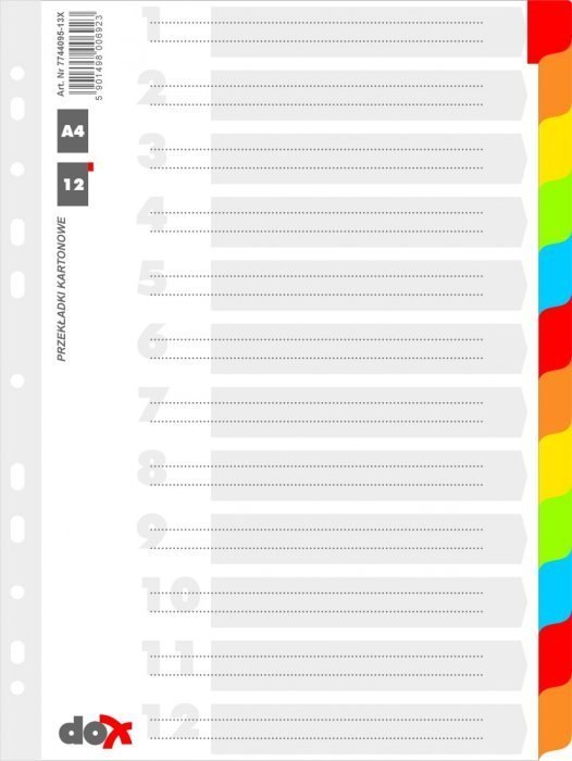 | Nazwa B2B | Przekładki karton z lamin. inexami DOX A4 KOLOROWE 12 kartek |