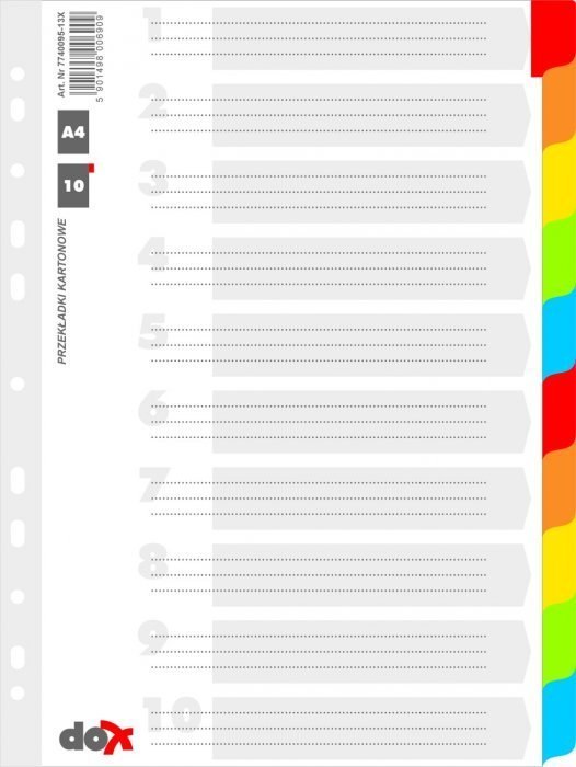 | Nazwa B2B | Przekładki karton z lamin. inexami DOX A4 KOLOROWE 10 kartek |