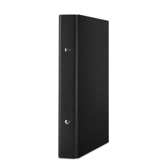 Wykonany z tektury o grubości 1,9mm i gramaturze 1170gsm_posiada Zielony Punkt (Der Gr_ne Punkt) - udział w systemie recyklingu i odzysku odpadów wynikający z przepisów prawa polskiego i UE_pokryty ekologiczną folią PP (100_m) o strukturze płótna_wewnątrz biała wyklejka papierowa_2-pierścieniowy mechanizm w kształcie litery O_średnica pierścieni: 20mm_szerokość grzbietu: 30mm_wymiary: 30x230x190mm_2 lata gwarancji na mechanizm_kolor czarny