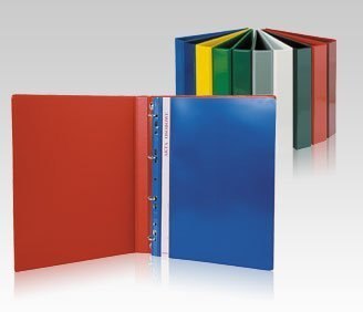 Wykonany z wysokiej jakości folii PCV z przezroczystymi kieszeniami na przedniej okładce i grzbiecie, które umożliwiają umieszczenie materiałów reklamowych. Wyrób wyposażony w mechanizm 4-ringowy w kształcie litery _D_. Szerokość grzbietu 8,5cm. Zamek umieszczony na tylnej okładce.