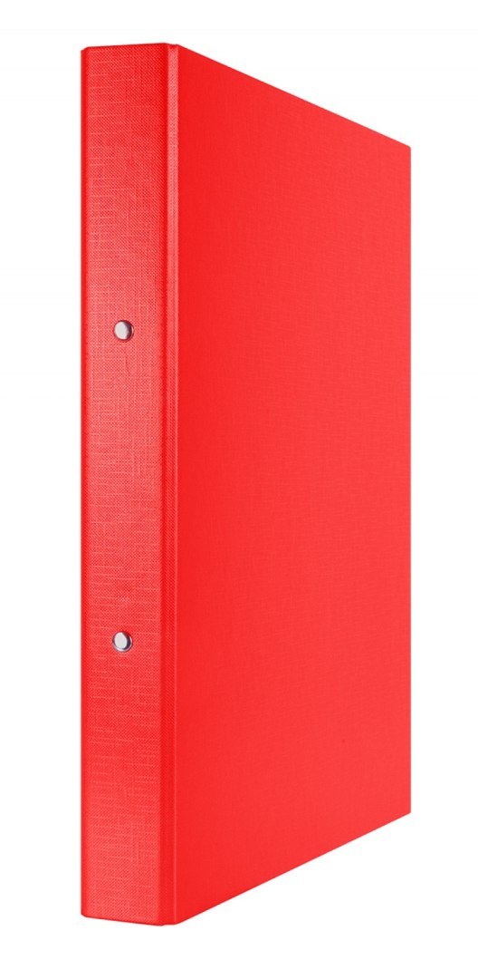 Wykonany z tektury o grubości 1,9mm i gramaturze 1170gsm_posiada Zielony Punkt (Der Gr_ne Punkt) - udział w systemie recyklingu i odzysku odpadów wynikający z przepisów prawa polskiego i UE_pokryty ekologiczną folią polipropylenową (100_m) o strukturze płótna_wewnątrz biała wyklejka papierowa_2-pierścieniowy mechanizm w kształcie litery O_średnica pierścieni: 30mm_szerokość grzbietu: 45mm_wymiary: 45x320x262mm_2 lata gwarancji na mechanizm_kolor czerwony