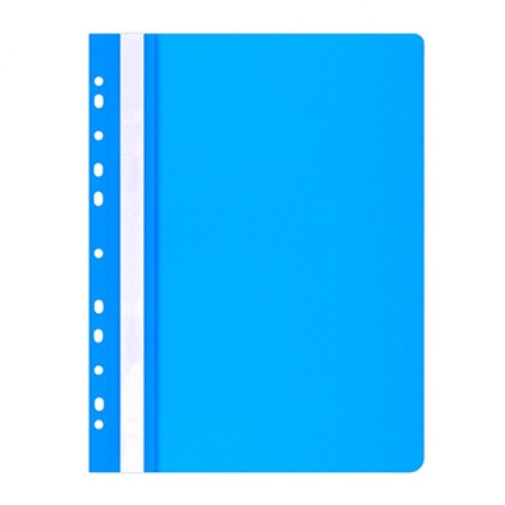 Wykonany z polipropylenu_strona przednia transparentna - grubość: 100_m_strona tylna kolorowa - grubość: 170_m_mieści ok. 200 kartek_posiada 11 dziurek do wpięcia do segregatora_wymienny, dwustronnie zapisywalny papierowy pasek brzegowy_format: A4_rozmiar: 237x310mm_kolor niebieski
