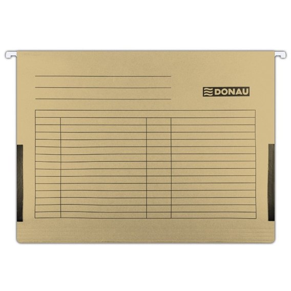 Wykonana z kartonu o gramaturze 230gsm_posiada Zielony Punkt (Der Gr_ne Punkt) - udział w systemie recyklingu i odzysku odpadów wynikający z przepisów prawa polskiego i UE_uchwyt zawieszkowy z metalu gwarantującego dłuższe użytkowanie artykułu_wyposażona w boczne ograniczniki z płótna zabezpieczające dokumenty przed wysunięciem_w komplecie ruchoma zakładka indeksowa oraz kartoniki do opisów_pojemność: 400 kartek w formacie A4_format: A4_kolor brązowy