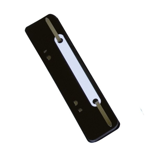 Metalowe wąsy skoroszytowe, spinające_posiada Zielony Punkt (Der Gr_ne Punkt) - udział w systemie recyklingu i odzysku odpadów wynikający z przepisów prawa polskiego i UE_podstawa wykonana z ekologicznego polipropylenu, wąsy wykonane z aluminium_4 dziurki do wpinania_rozmiar: 150x34mm_25 sztuk w j.s._kolor czarny