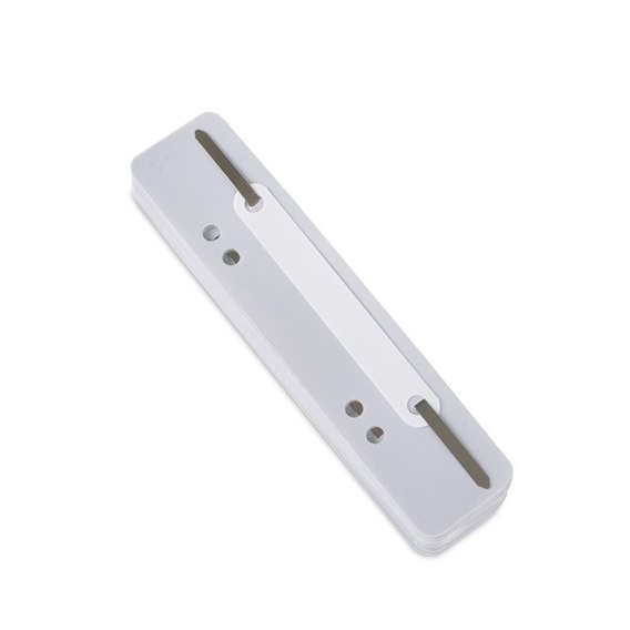 Metalowe wąsy skoroszytowe, spinające_posiada Zielony Punkt (Der Gr_ne Punkt) - udział w systemie recyklingu i odzysku odpadów wynikający z przepisów prawa polskiego i UE_podstawa wykonana z ekologicznego polipropylenu, wąsy wykonane z aluminium_4 dziurki do wpinania_rozmiar: 150x34mm_25 sztuk w j.s._kolor szary